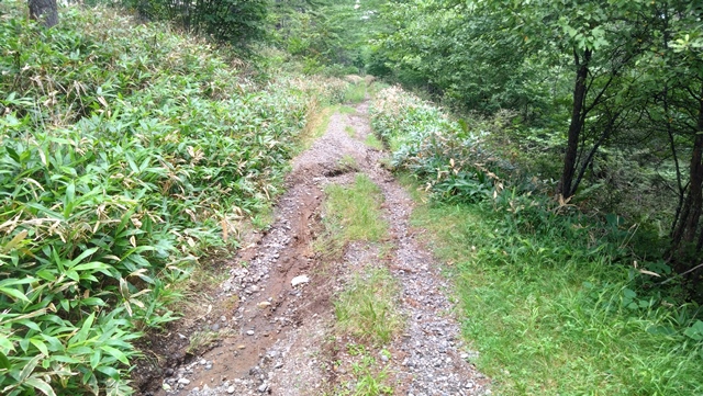 後半はもう道がボコボコで深い溝が横切ったりで、道幅も狭い。四輪車であれば、リフトアップした軽トラやジムニーでないと通過は難しそう。