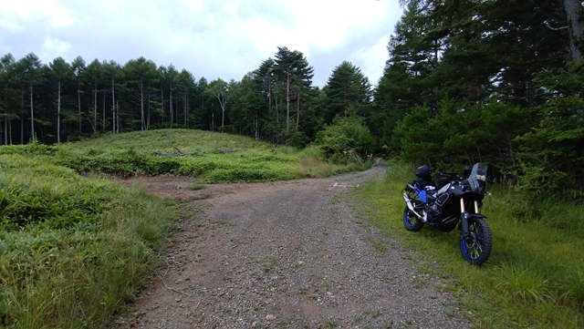 高原野菜畑を抜けて林間の一般道を走り、次の林道である「八ヶ岳林道」へ向かう。