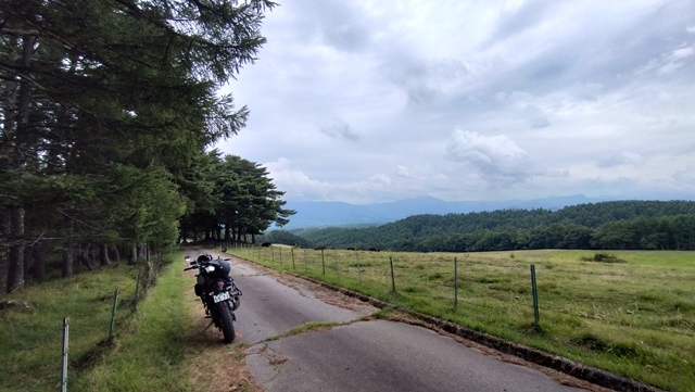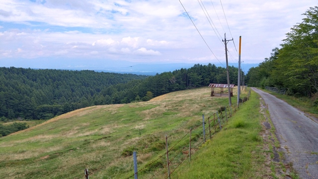 草原の中を貫く一本道で、途中に「志木市立八ヶ岳自然の家」へと続く1か所の分岐があるが、看板があるので道に迷う心配もない。