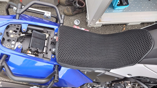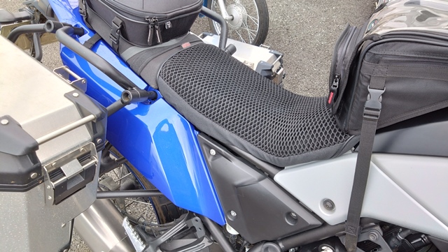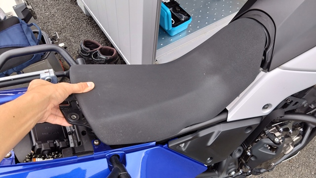 メッシュシートカバー装着後のテネレ700。さすがはワイズギア製品とだけあって、見た目も違和感なくスマートに装着できている。なお、取り外す際はライダーシートを外さずにシートカバーの取り外しが可能。