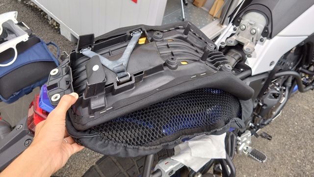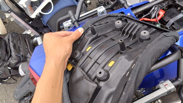 シートカバーの厚みで、車体への取り付けが少しキツかったが、強めにはめ込んで問題なく元通りにライダーシートを取り付けられた。ライダーシート後方のボルト2か所も純正と同じものでOK。