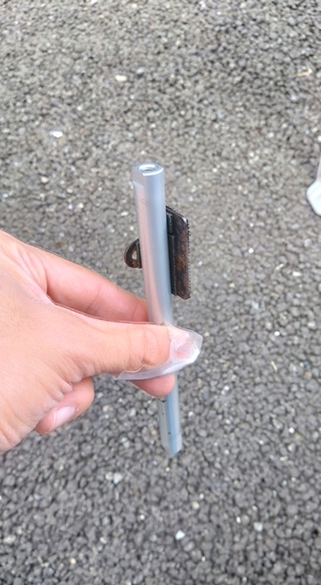 純正のバーは車体から完全に取り外し、RC甲子園のアクセサリーバーと交換する。並べてみると、太さが全然違うことが分かる。