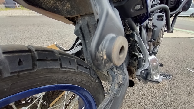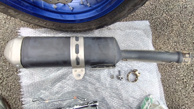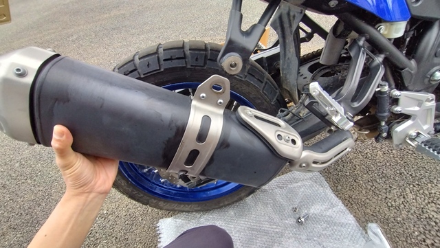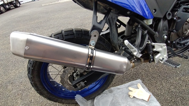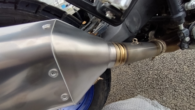 ヤマハ純正のマフラーに特に不満は無かったが、インターネットでタイミングよく新古品のマフラーを購入できたので、カスタムの第6弾として、マフラーの交換を行うことにした。