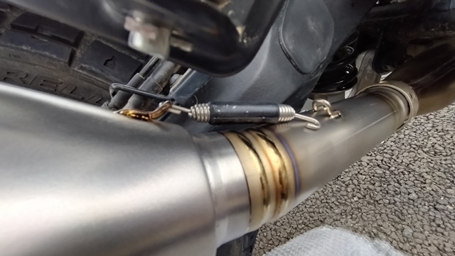 なお、バネを取り付けるまではマフラー本体が外れやすい状態のため、外れないように慎重に行う必要がある。