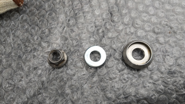 純正マフラーのみで約4.8kgとそれなりの重量があるが、意外にも固定されていたボルトネジは2か所のみであった。このボルトネジは使用しないため、無くさないように純正マフラーと一緒に保管しておきたい。