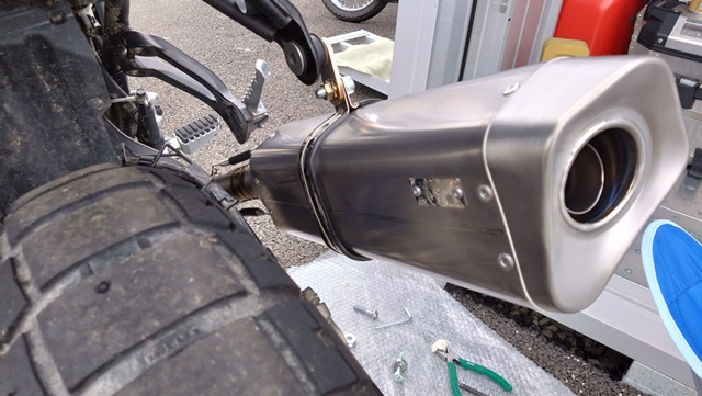 テールパイプの取り付けが終わったら、マフラー本体を取り付ける。