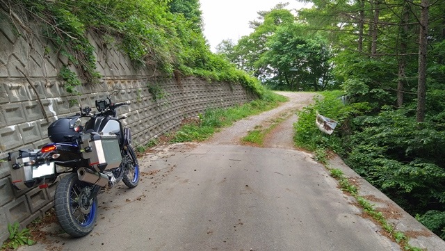 やがて、終点付近の分岐点にたどり着いた。千代田湖側から来ると左側がダートが続いているが、右の道は舗装されている。高遠町方面に抜けたい場合は右側の舗装路へ、国道152号線で分杭峠方面へ向かいたい場合は、左のダートを進むのが正解だ。