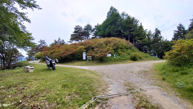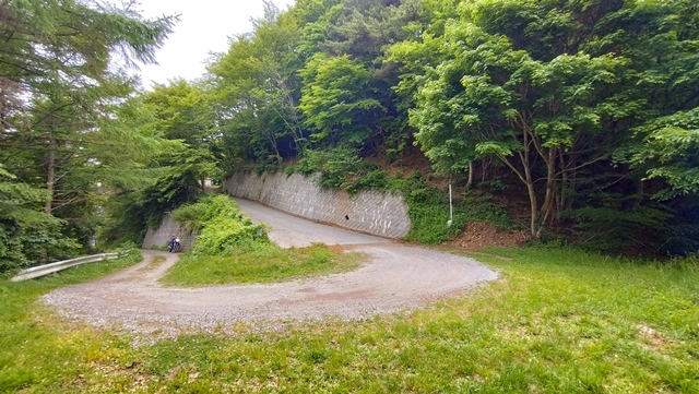 分岐点から山の頂上までは約0.7km。急坂・急カーブだがガレてはいなかったので、大型バイクでも問題無く進めた。