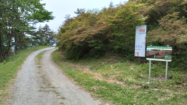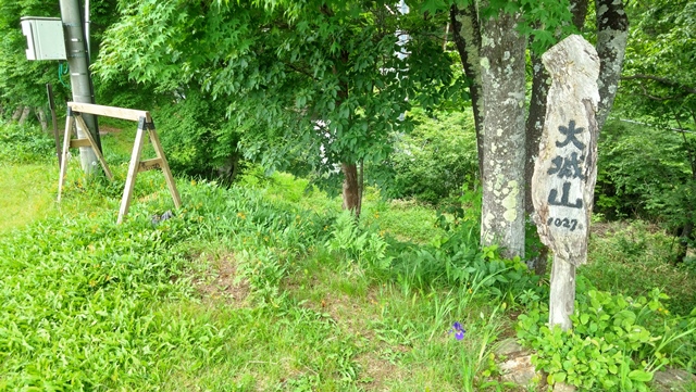 あっという間のダート走行で「大城山」(標高1,027m)の頂上に到着。山頂は車両進入禁止のため、下の広場に停めることになる。道幅的にはランドクルーザークラスの四輪車でも通行可能だ。