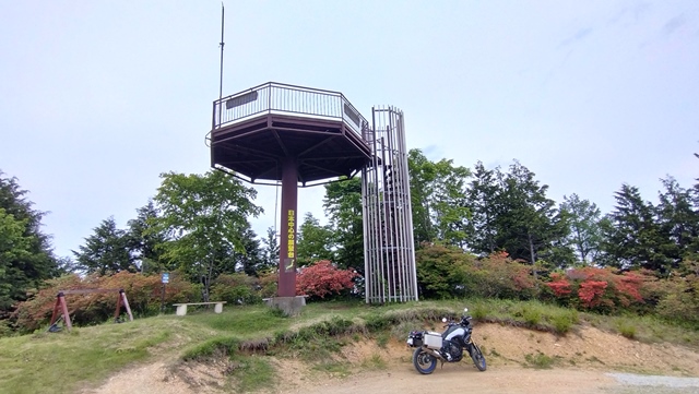 日本のヘソに到着。この日は薄曇りだったが、ここからの景色も絶景だ。こういう場所に気軽に来れるのが、大型オフロードバイクの旅も醍醐味だ。