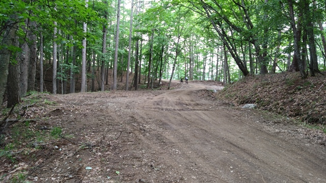 展望ポイントを通過すると、急なカーブが続く下り坂になったが、この区間においても、所々にぬかるみや小さなクレバスがあった程度で、路面はフラットダートが中心で走りやすい。