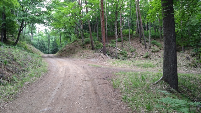 起点から約3.2キロ地点に分岐点があり、右折すると急坂のダートがある。ここを上がって行くと山の頂上へ行けるようだ。