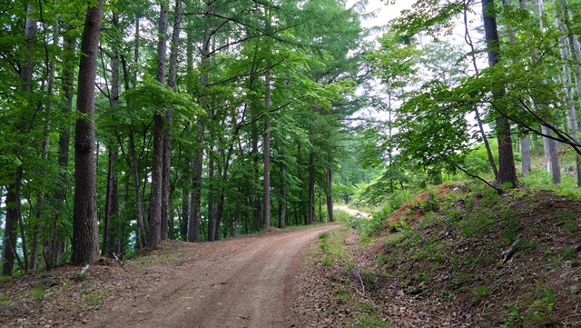 道幅は林道としては広めで、ランドクルーザークラスの四輪車でも通行できそうだ。