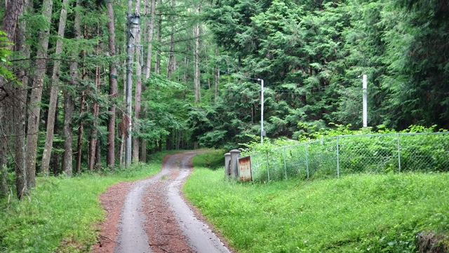 ここから先は市道(舗装路)となる。狭路が続くが、この時期、近くの入笠山では高山植物が見頃を迎えていて、そこへ向かう車が多いのか、数台の車を見かけた。
