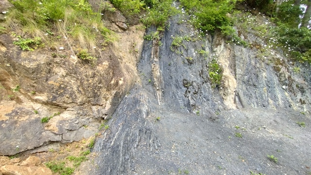 中央構造線の断層が むき出しになっていて、目の前で見ることができる場所であった。あまり観光地化されておらず、地質や地層に興味のある人はオススメだ。