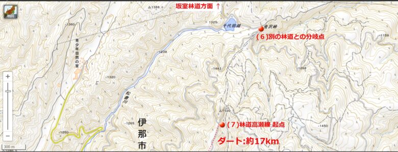 <林道王城枝垂栗線>の地図 ※地理院地図から作成